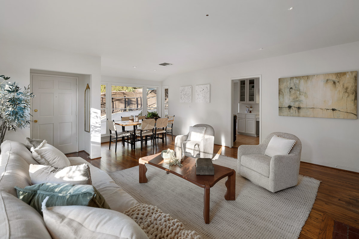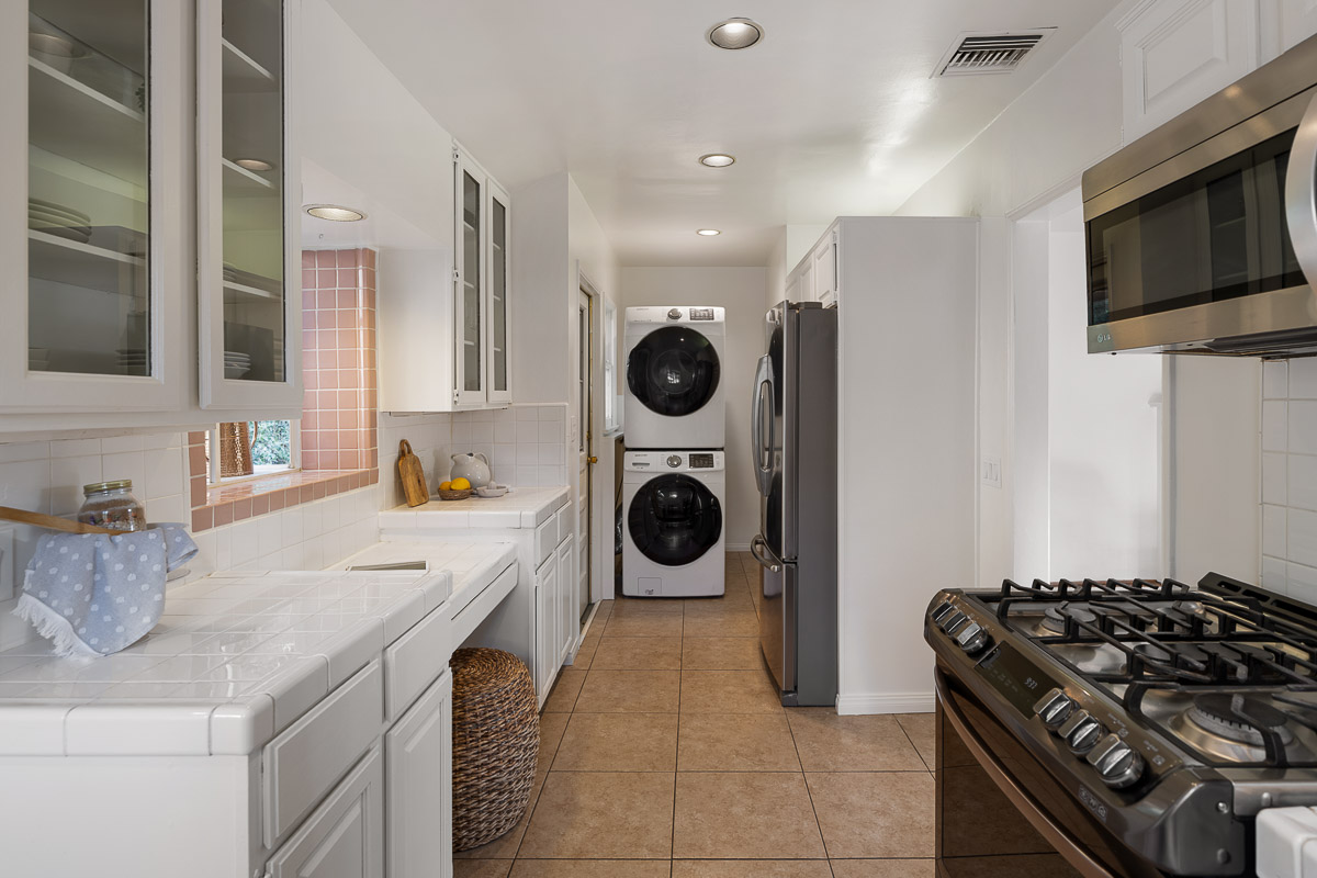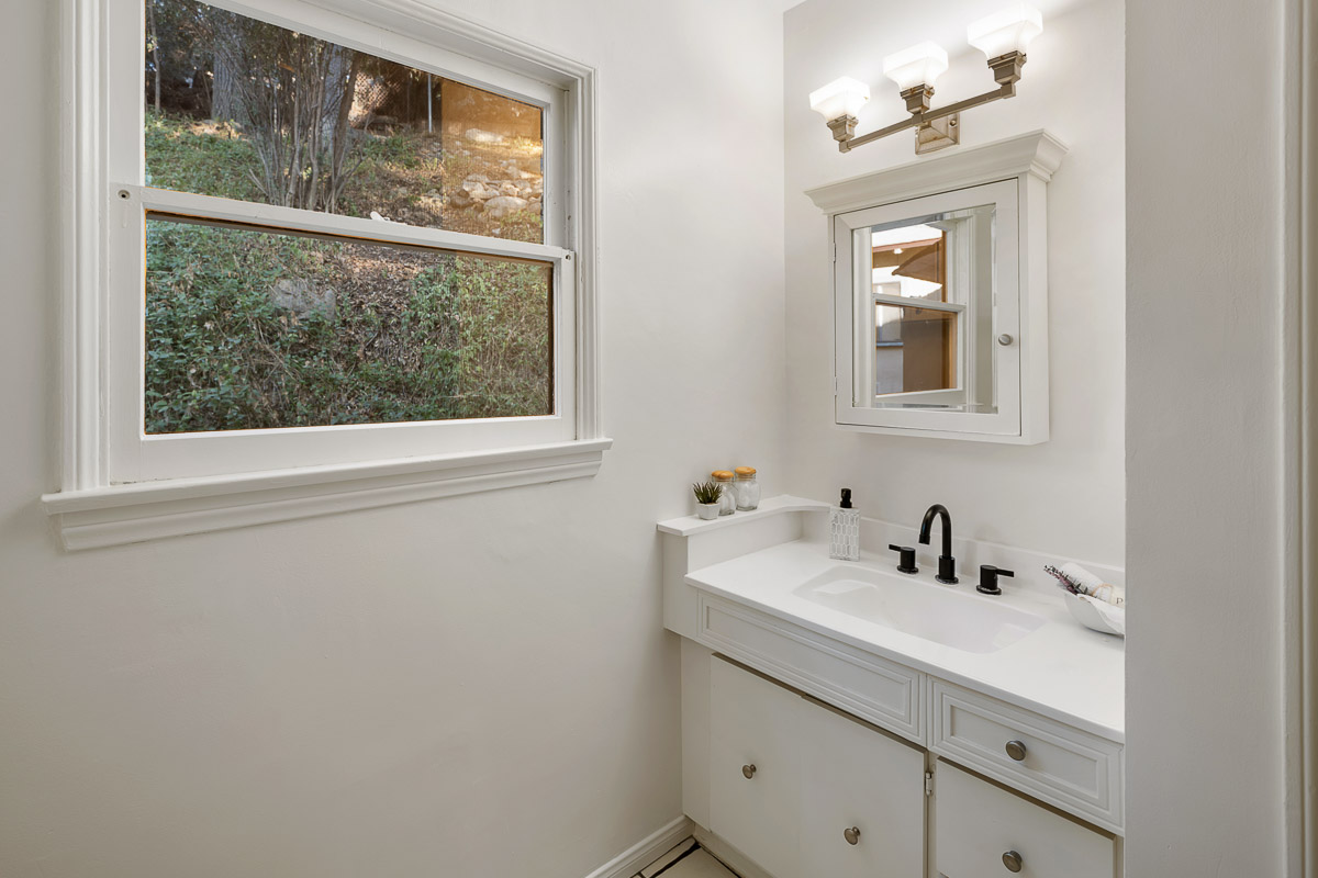 A picture perfect, turn-key three bedroom, two bath Mid-Century home in the sought-after lower Canyon Crest corridor. The welcoming residence is light and bright with an ideal floor plan for entertaining. The house has been meticulously cared for and was done so as to marry the style of the period with the modern amenities of today. You step into a sunlit living room wrapped in windows, offering peek-a-boo canyon views, all leading into a sun-dappled kitchen with stainless appliances, bumped out boxed windows, a charming work desk and an attached laundry room space. There are beautiful details throughout including hardwood floors, an inviting fireplace with custom mantle, recessed lighting and spacious rooms bathed in light.
